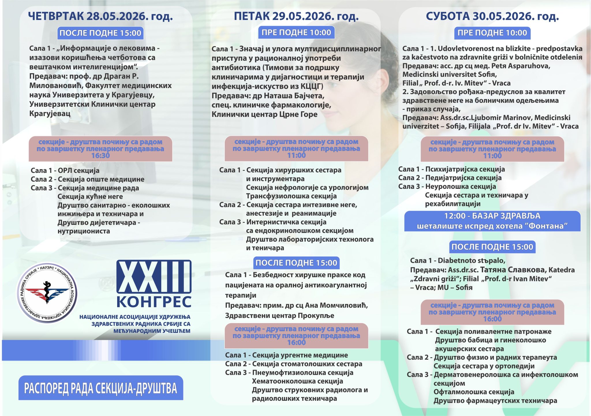Позивамо све учеснике да се упознају са распоредом усмених и постер презентација како би на време планирали своје активности током четири дана трајања Конгреса.